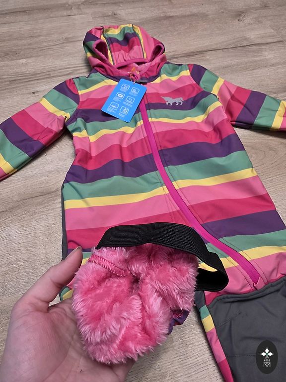 Mīksts un elastīgs āra kombinezons, kas izgatavots no softshell materiāla ar izturīgiem pastiprinājumiem un flīsu aizmugurē. Katra bērna iecienītākais virsdrēbes materiāls.
