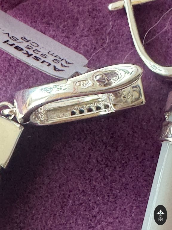 925. proov hõbe, looduslik pärl, pärlmutter.