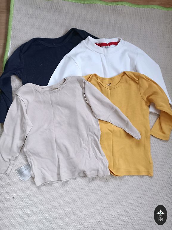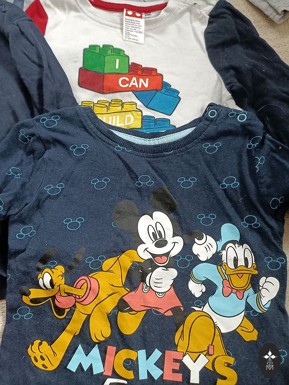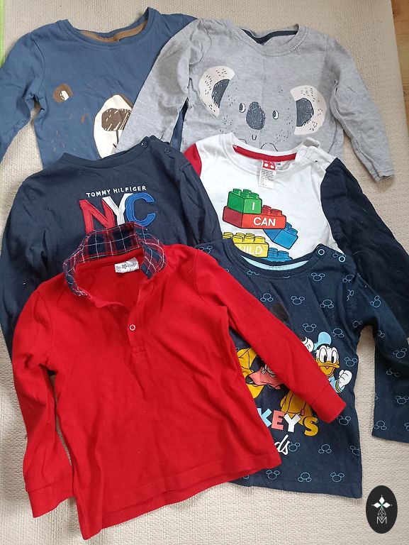 Clothing set for a little boy size 80-86, mostly size 86. Clothes after 1 child. A total of 28 clothing items. Set with a striped shirt with a bow tie and red pants - never worn; Next plaid shirt, second Tea; Esprit pants with Belly Button sweater with a monkey (organic cotton, monkey squeaker); Brown pants with suspenders from shein; DopoDopo baby caramel-colored pants never worn and Reserved sweater with a puppy; Blue hoodie and pants from Reserved; So cute pants. Additionally in the set (pictures will be sent separately) - Zara baby shirt, 3 pairs of Reserved pants, Reserved sweater, Reserved shirt, Dirke shorts and shirt (set), So Cute 3 pairs of pants, So Cute shirt, So Cute vest (unworn), cap with a bear, Happy Socks socks 4 pairs. Certainly useful for another little boy to wear. Price for all clothes together. Delivery costs covered by the buyer.