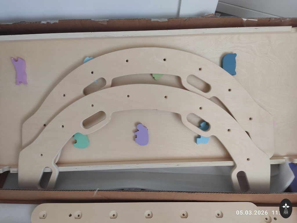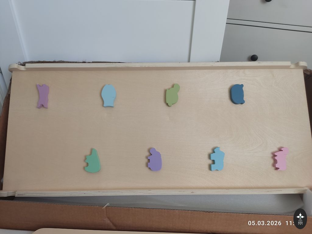 Valmistatud lamineeritud kasevineerist. Pulgad on värvitud veepõhise värviga, mis on spetsiaalselt mõeldud laste mööbli ja mänguasjade jaoks. Toode on uus, valmistatud Lätis. Mõõtmed on piltidel näidatud. Selle hinnaga on saadaval vaid mõned ühikud.
