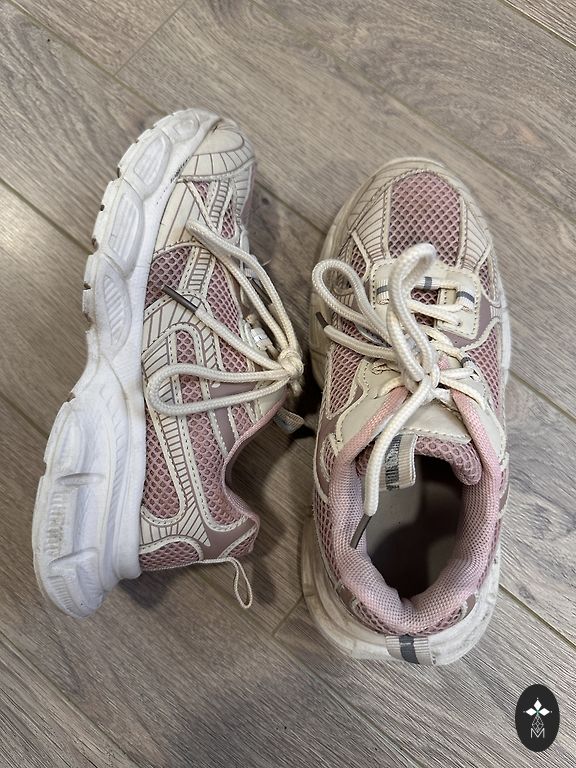 Розовые спортивные обувь Reima, в очень хорошем состоянии, небольшой невидимый дырочка видна на последней фотографии. Идеальные для весны, качественные и удобные. Размер 25, подошва 18, стельку не скажу.