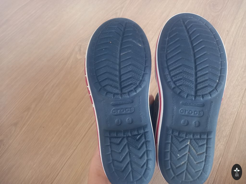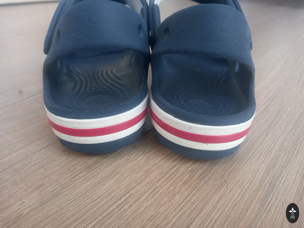 Crocs J1 zābaciņi. Ir valkājuma pazīmes(nobružāti purngaliņi, aizmugurē nobružājies-bildēs norādīts). Bet nekas nav caurs un audums nav saplēsts. Vēl noderēs pavasarim/rudenim. 😉