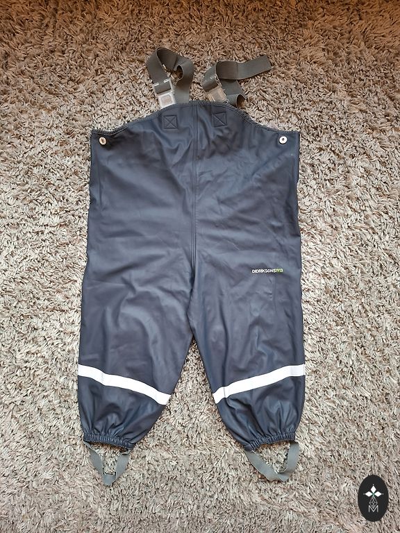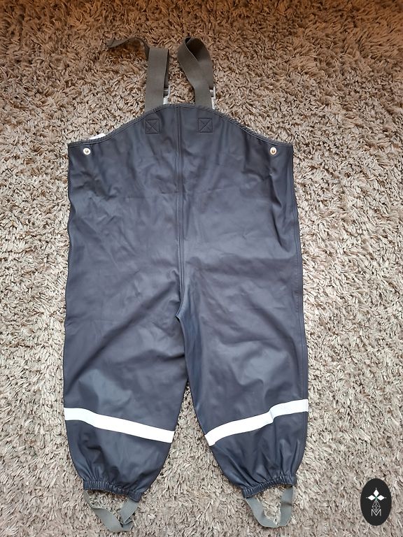 Naujos lietaus kelnės su pašiltinimu. Jau kelis sezonus naudojame Lidl lietaus drabužius ir jie yra puikūs. Dukra visada buvo šiltai ir sausa. Puikios darželio dėvėjimui.