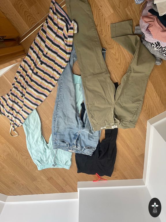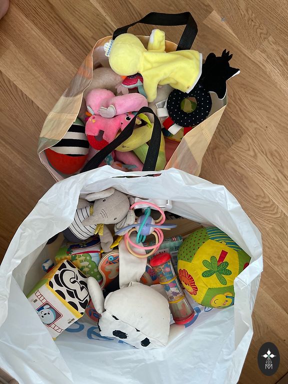 The bags contain children's clothes and shoes from birth to one year, both new unused items and some with stains. Socks, hats, everything needed. Some pacifiers, diapers, bottle warmer, nail scissors, etc. A bag with sheets, baby sleeping bags. The clothes have been for a girl, but many clothes also fit a boy.
