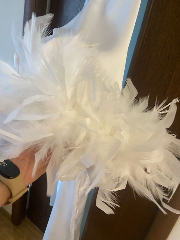 Новый, атласный удлиненный топ небесно-голубого оттенка, асимметричный с красивым кружевом. Обхват груди до 96 см.