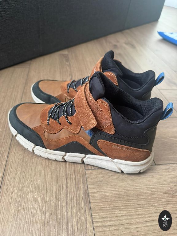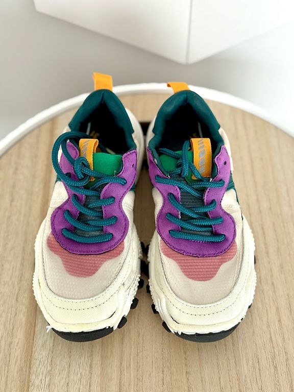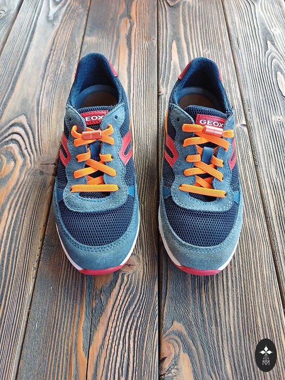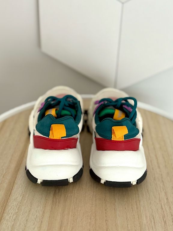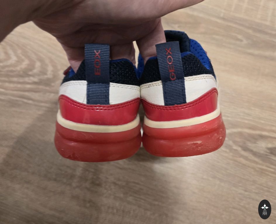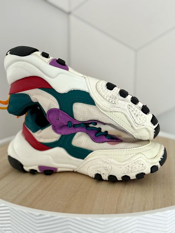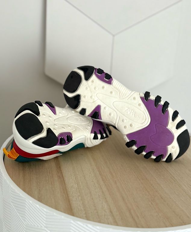 Pāris reizes vilktas, taču šķiet no āra aktivitātēm apavu apakšdaļā uz baltās joslas redzamas pelēcīgas krāsas “zīmes” (redzams bildēs)
