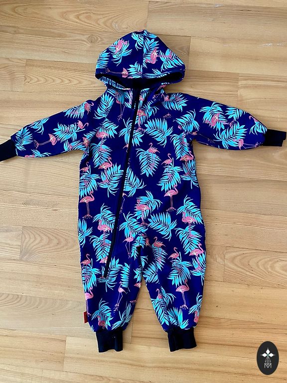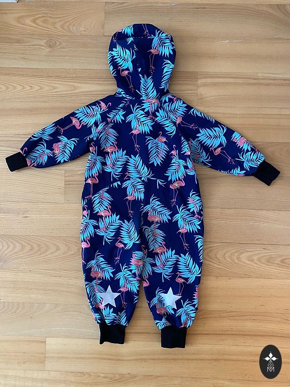 Lietots cītīgi, ir pa krāsas noberzumam. Gumijas labā stāvoklī. Caurumu nav. Bikses regulējas. Izcils bērnudārza laukumiņa dubļiem.