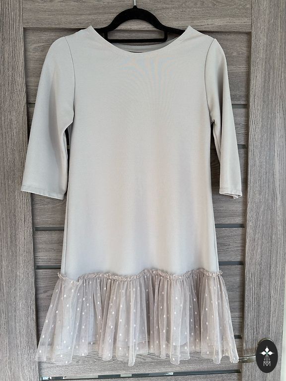 Casual / everyday dress. Pleasant to the touch, with long sleeves, loosely falling. Manufacturer: Piena, size 4, M/L. Measurements: bust 102cm, hips 130-140cm. Sleeve length 50cm, dress length 1 meter. Shipping not included.