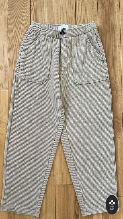 Mīksts, patīkams audums ar reljefu struktūru. Ļoti ērts ikdienai – var vilkt ar bodiju, krekliņu vai džemperīti. Priekšpusē kabata.