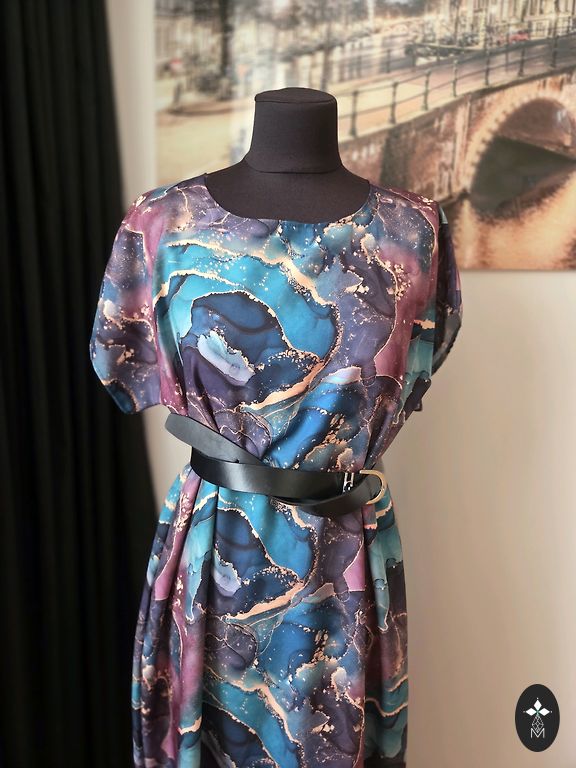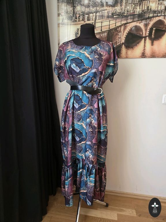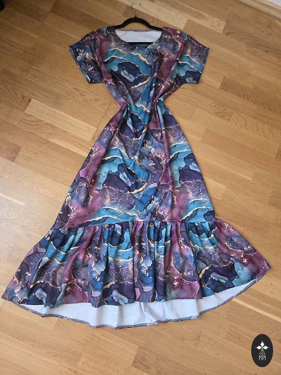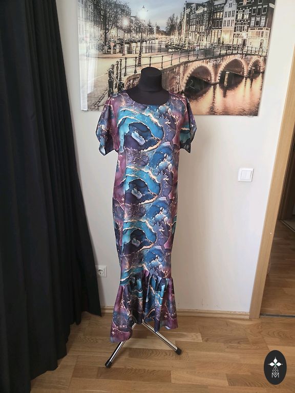 Kleita ir lieliskā stāvoklī, vienīgi aizmugurē šūvē ir auduma defekts, itkā izīrusī vīle,