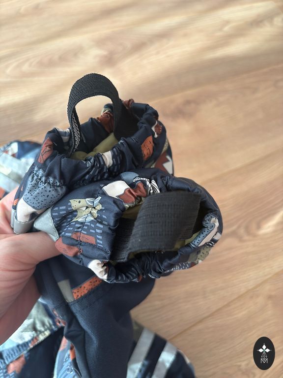 Suurus 104. Siseõmblustega, et oleks mugav siseruumides ülemist osa eemaldada. Talje laius on reguleeritav. Niiskus- ja tuulekindel, hingav. Ilma defektideta, pärast ühte last. Mõeldud +5 kuni umbes +15 kraadi.