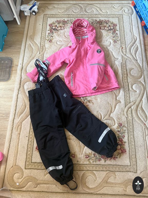 Puikus stovis. Mūsų mėgstamiausias komplektas. Puikiai prailginta striukė ♥️ kelnes dėvime ir žiemą su žiemine striuke. Labai lengvai skalbiama mašina. Neperšlampama, nuo 0 iki +13 laipsnių. Dydis 116 (realus 122! 122-128)