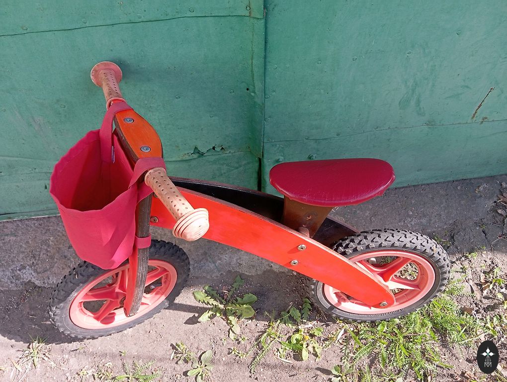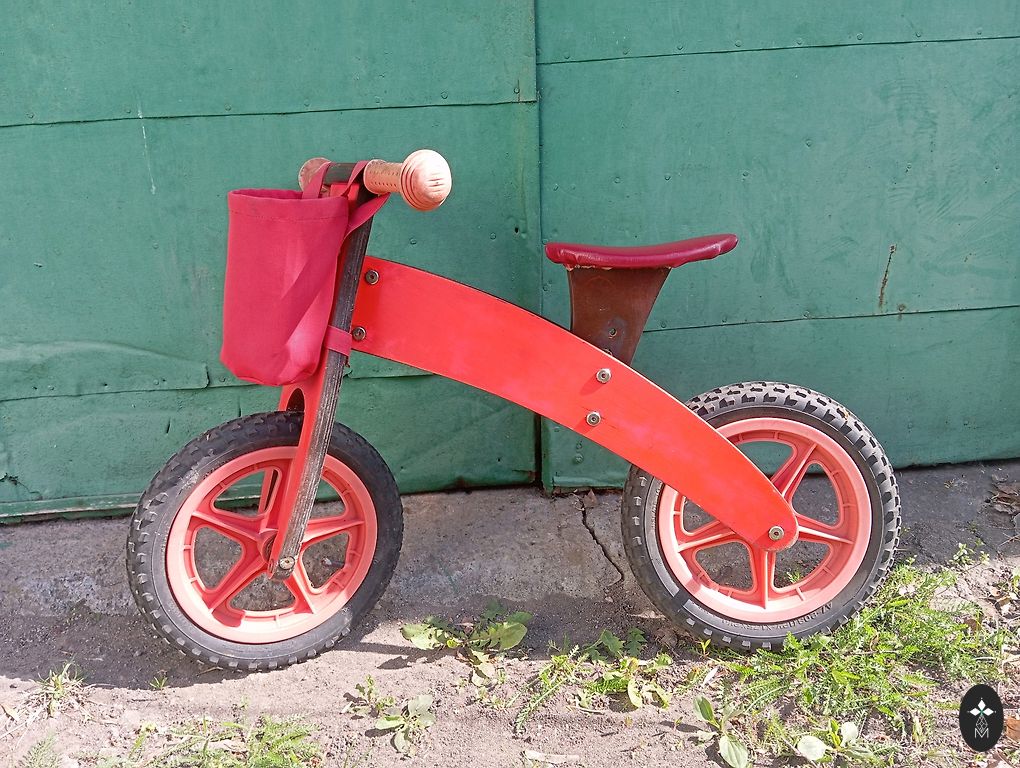 Pirkts andelē pagājušajā gadā, bet pasteidzāmies, jo jaunākais vēl galīgi nebija gatavs braukt ar velo, un šogad jau vajadzēja lielāku. Aizmugurējais dubļu sargs nolauzts, ir daži rūsas pleķi, bet tas braukt netraucē. Atrodas Sarkandaugavā, darba dienās var saņemt Torņakalnā.