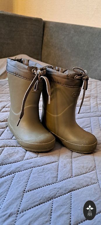 Bisgaard termo lietaus batai su pašiltinimu, puikiai tinka vėsiam pavasariui/rudeniui. Tinka ir platesnei kojai. Vidpadžio ilgis 15 cm. Pirkti nauji.