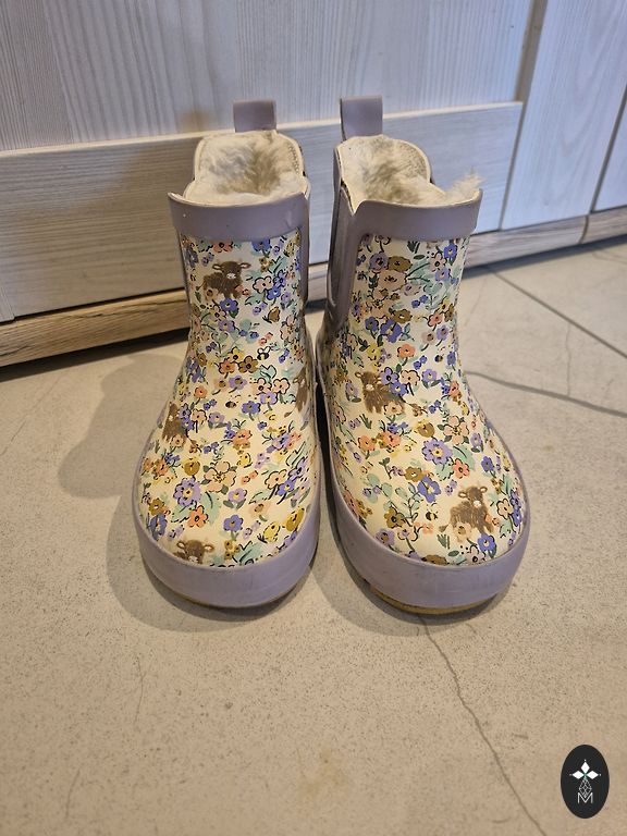 gumijas zābaki,iekšpusē neliels siltinājums,ari auduma daļa mitruma necaurlaidiga. rakstīts 23.izmērs, bet ir lielaki,uz 24.izmēru