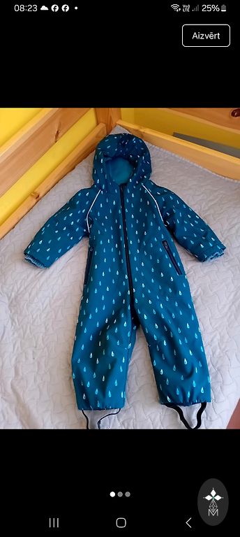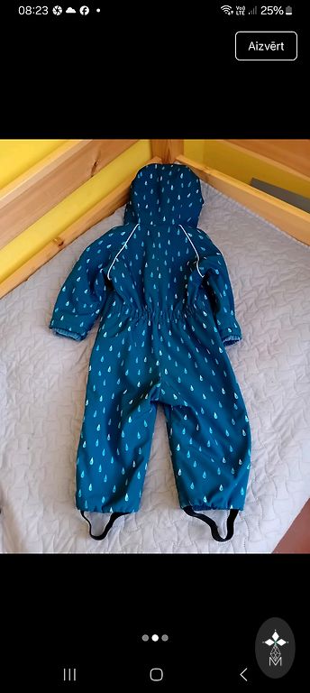 Размер 92. Немного потертое колено, но в принципе незаметно.