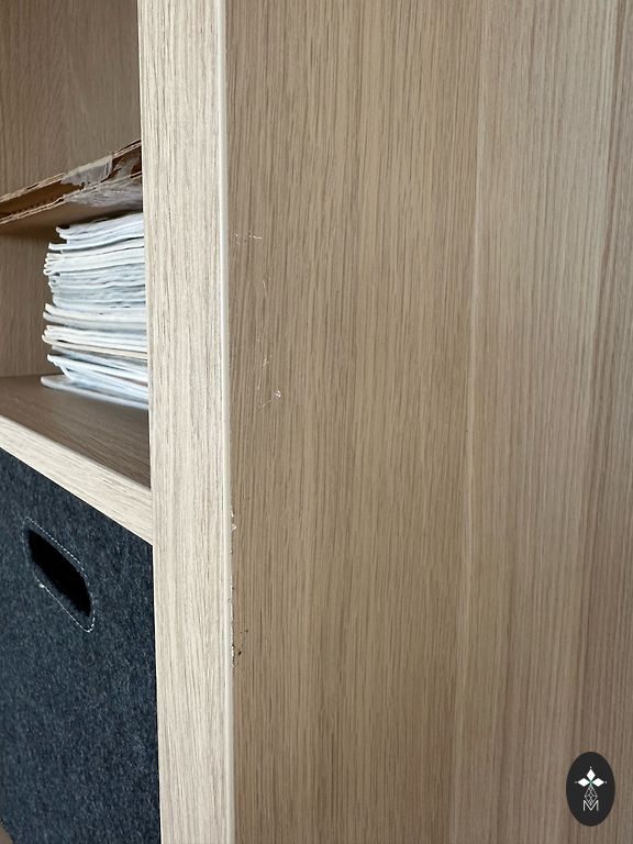 Parastais kallax, krasoju pati, lillā krāsa, is daži skapējumi uz virsmas. Pašizvešana
