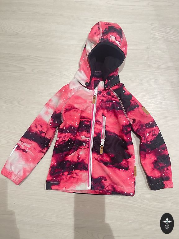 softshell jaka 1 universāla un noderīga- vēja un ūdens necaurlaidīga ( 8000m) bet elpojoša un ērta. kabatas ar rāvējslēdžiem. savelkama kapuce un apakšējā mala un regulējamas piedurknes. izmērs uz 134/140