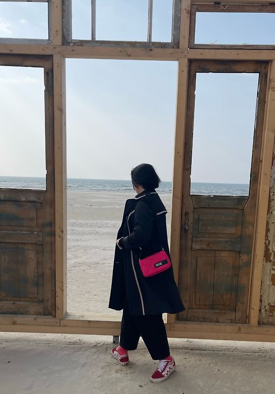 Stilingas laisvo stiliaus striukė, jaučiama kaip medvilnė, tačiau aprašyta sudėtis yra viskozė, poliesteris, medvilnė. Pagaminta Italijoje. Neapdoroti kraštai, galima papildomai modeliuoti susitraukimus su įmontuotomis virvelėmis. Krūtinės dydis apie 110, galbūt šiek tiek daugiau.