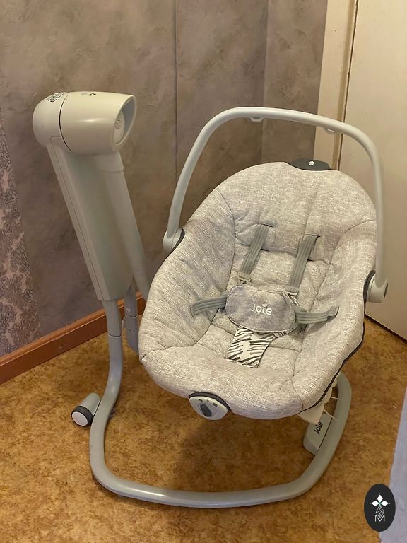 Ar pagarinājumiem, pieskruvējamām koka kājiņām. Ļoti ērts un stilīgs. Un papildus došu līdzi davaniņas. Krēsls normāla stāvoklī, bet divi bērni lietojuši, protams, var redzēt lietojuma pazīmes, defektu nofotogrāfēju.