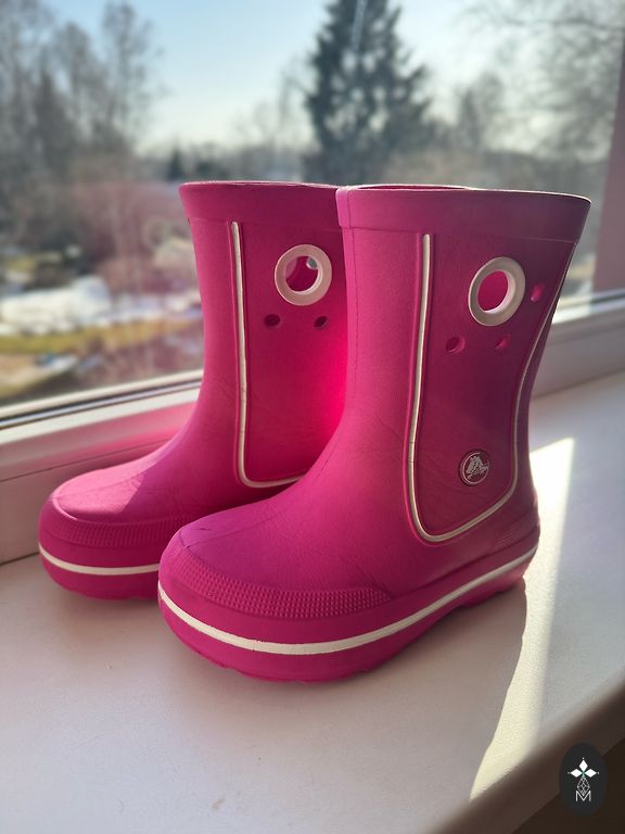 Красивые, ярко-розовые сапожки CROCS.C9 (размер 25-26). 🌸