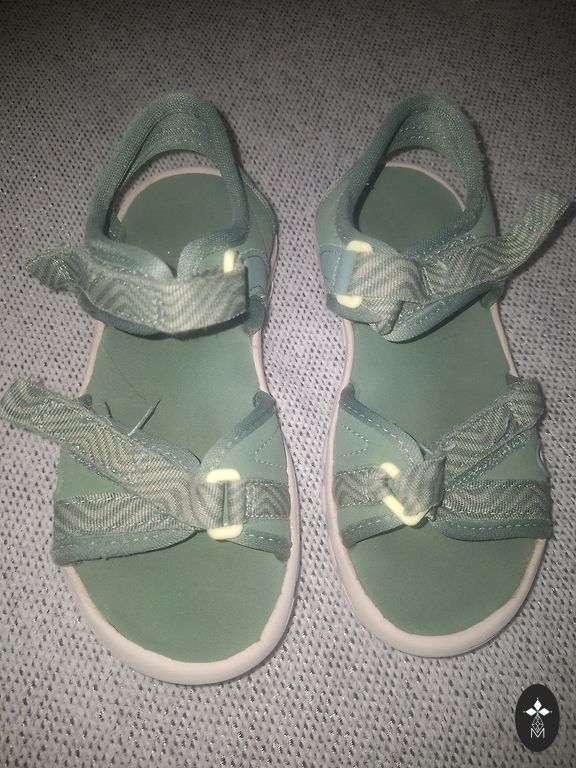 The sandals are marked as size 30, but they are smaller. The insole is 18.8cm, suitable for a foot size of 17-17.8cm. No defects, the Velcro fastens very well. The sandals are light and flexible.