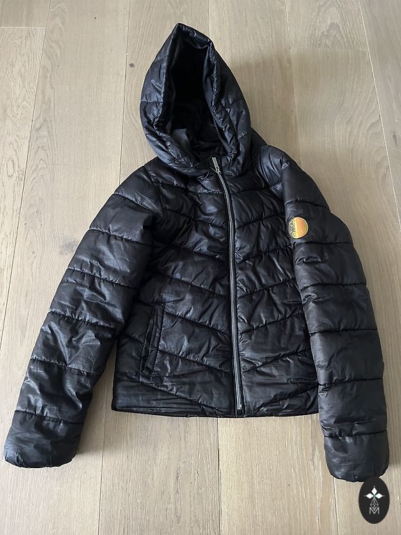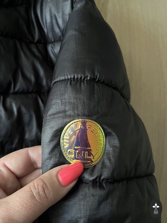 Motociklininko stiliaus striukė iš Zara su atvartu apykakle ir ilgomis rankovėmis. Priekyje užtrauktukas ir priekinės kišenės su užtrauktukais ir atvartais.