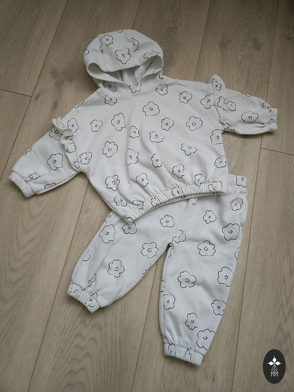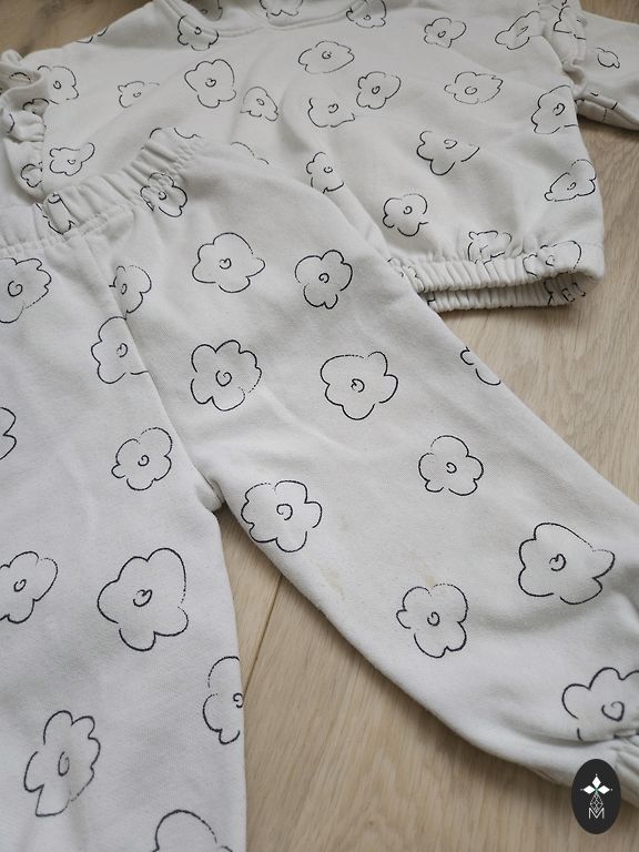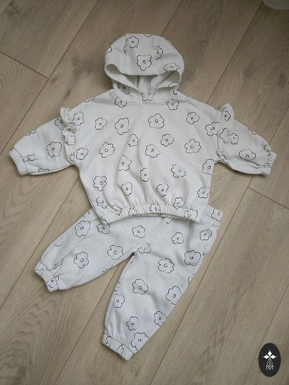 Labai minkštas šiltas komplektas mergaitei pavasariui, aš labai mėgstu tokius komplektus, turėjome daug įvairių, šį padėjome augimui ir, deja, pamiršome apie jį. Dydis 9-12 mėn., bet puikiai tiks ir ilgiau! Rekomenduoju 🌸