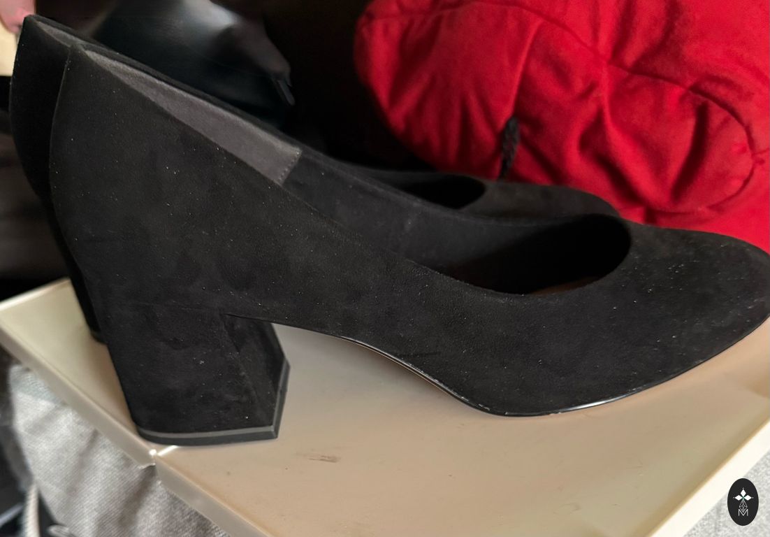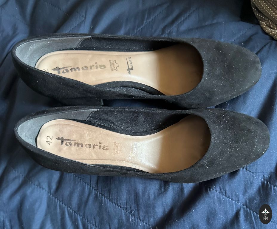 New suede fabric shoes, only tried on a couple of times indoors, then placed back in the box. Heel 9cm