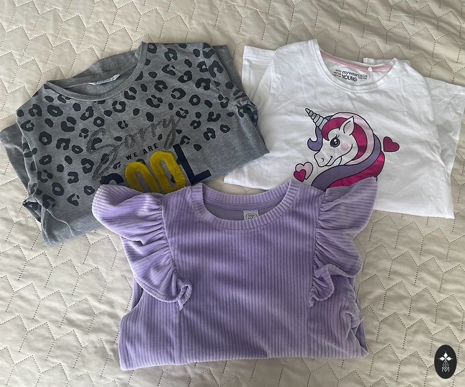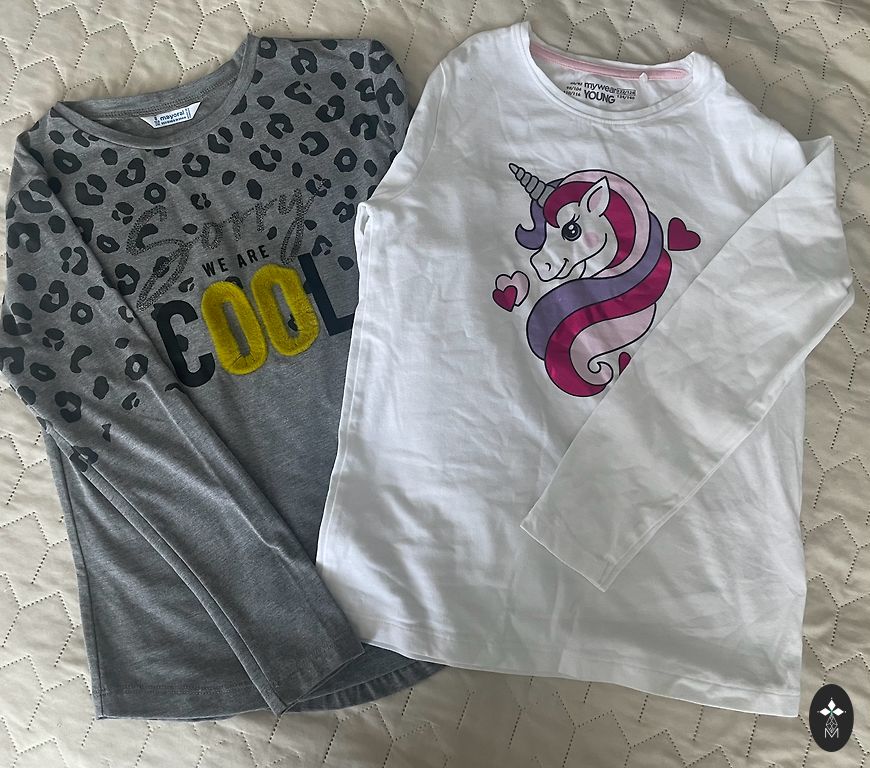 For sale: two long-sleeve shirts for a girl 130cm tall. Stretchable.