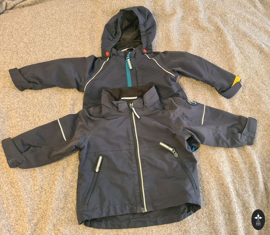 Gražus pavasario/rudens švarkelis. Dydis nurodytas 86, bet yra mažesnis, matmenys nuotraukose. Viduje, kur etiketė, yra mažas skylutė, bandžiau sudeginti, kad nesikabintų siūlas, bet tai tik viduje. Funkcionalumui neįtakoja. (5 nuotrauka)