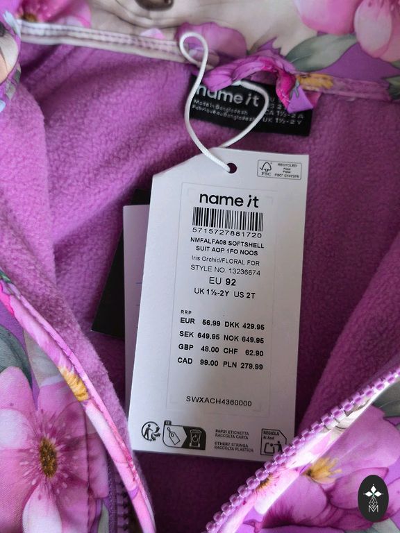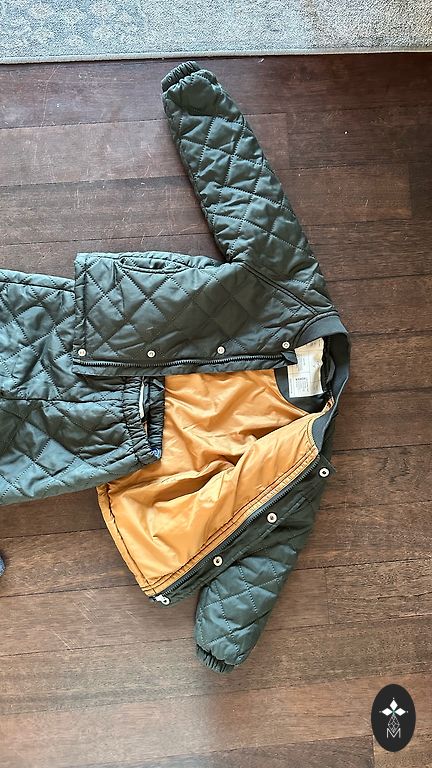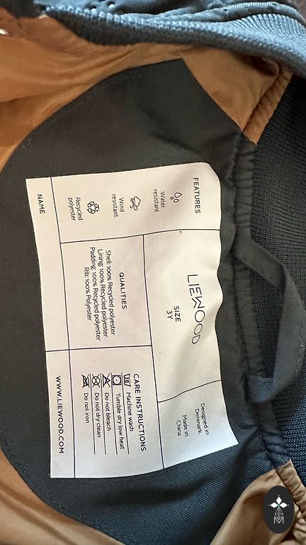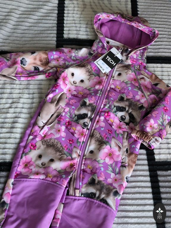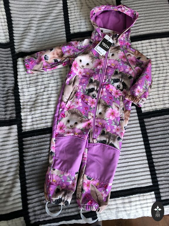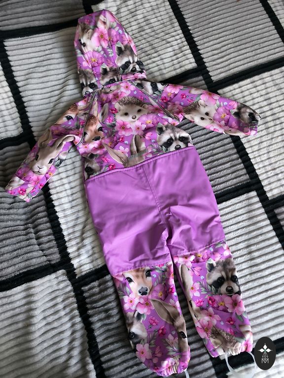 Just right for such weather, neither too thick nor too thin. The fabric repels wind and rain. As for drawbacks, I can mention that the application on the hood has started to crack (see photo 3), and the string for hanging inside was torn, so I cut it off. The clothing is marked as 98cm, which is the size we wore, and it fit well.