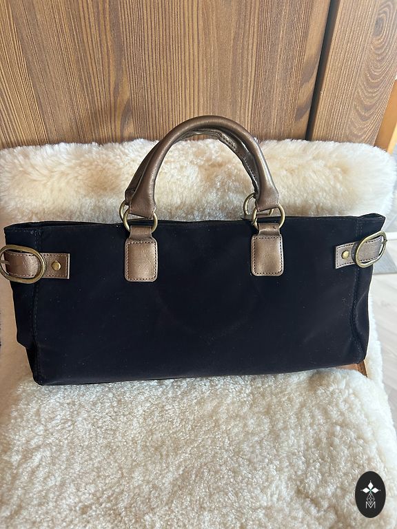 Set includes trapeze-shaped Tote bag with magnetic stud closure + French Style bow accessory + Clutch wallet. Size: 52cmx27cm-22cm
