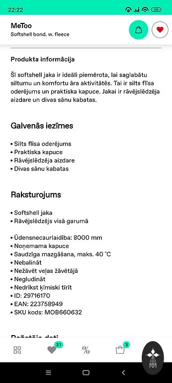 | Medžiaga | Softshell |
