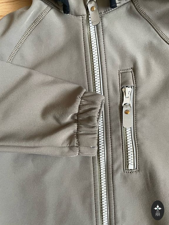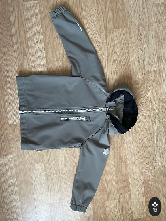 Kevad/sügis jope. Suurus 104-110. Kaenlaalt varrukani 33 cm. Piltidel on näha jope visuaalsed puudused. Õmbluste juures on polsterdus veidi kortsutanud. Termo jope, hoiab tuult ja vihma eemal.