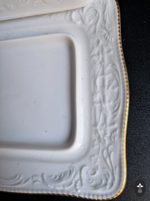 Gamintojas: prestižinė Haviland & Co., Limoges (Prancūzija). Amžių patvirtina įspausti antspaudai porceliano masėje.