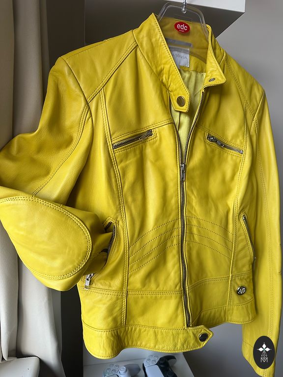 Sezono top spalva (garstyčių) odinė striukė. EU 42 dydis. Su kišenėmis, nedideliais paminkštinimais. Niekada nedėvėta, deja, tai ne mano spalva.