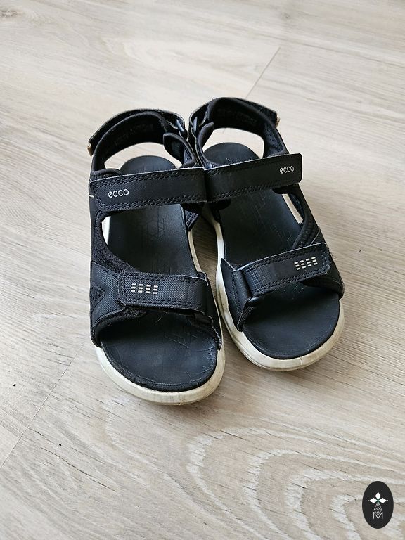 32.izmēra Ecco ādas sandales, nēsātas tikai pa bērnudārzu, bet noteikti vēl kalpos ilgi. Nākamās iegādājāmies tieši tādas pašas, jo viegli uzvelkamas, labi izskatās un bērnam ērti kājai.