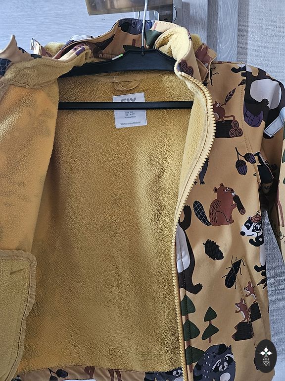 Gražus softshell švarkas, tik keli maži taškeliai priekyje.