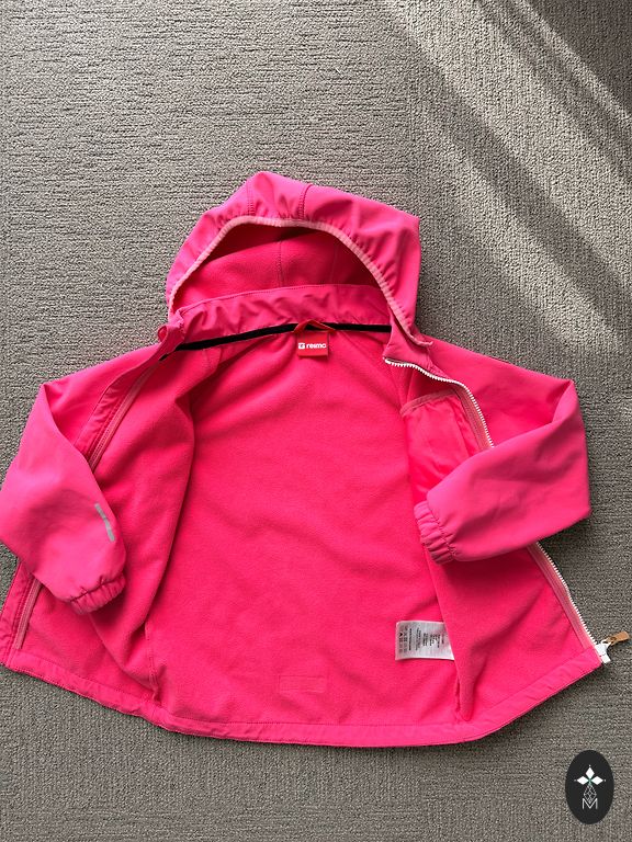 Praktiškas, margas raštas - ne baltas, visur pilkos taškuose. Puiki Reima kokybė! 👌👌tiks ilgiau, nes Reima yra su atsarga. 110 dydis. Nuimamas gaubtas.