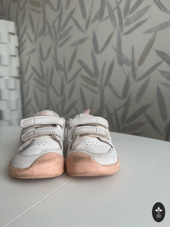 Suurus 25, sisetald 14 cm. Nahast. On näha kandmise märke, kuid jalatsid on mugavad, kerged, takjakinnitused töötavad, auke pole. Sobib laiale jalale.