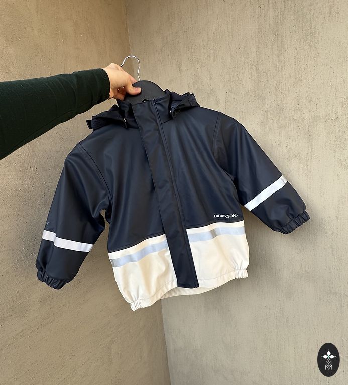 Size 110. With warm fleece lining. As a softshell, it's moisture and windproof, breathable. Without any defects, worn little and gently.