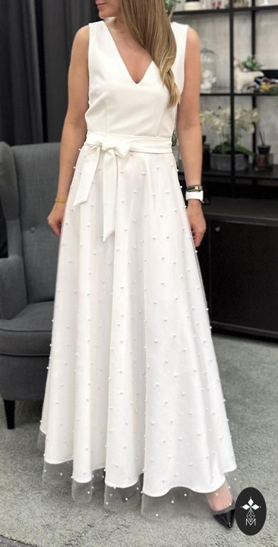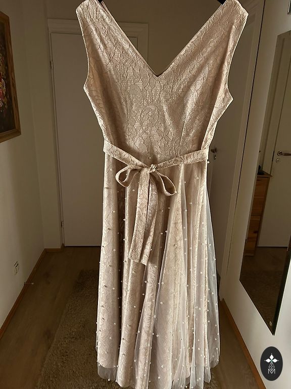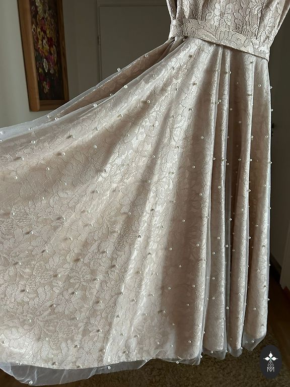 Skaista, eleganta un izsmalcināta kleita gaida savu jauno saimnieci.Kleitas garums 132 cm, vidukļa platums apm.42-43 cm, platums krūtīs apm. 45 cm.-46 cm, , roku garums apm.47 cm.