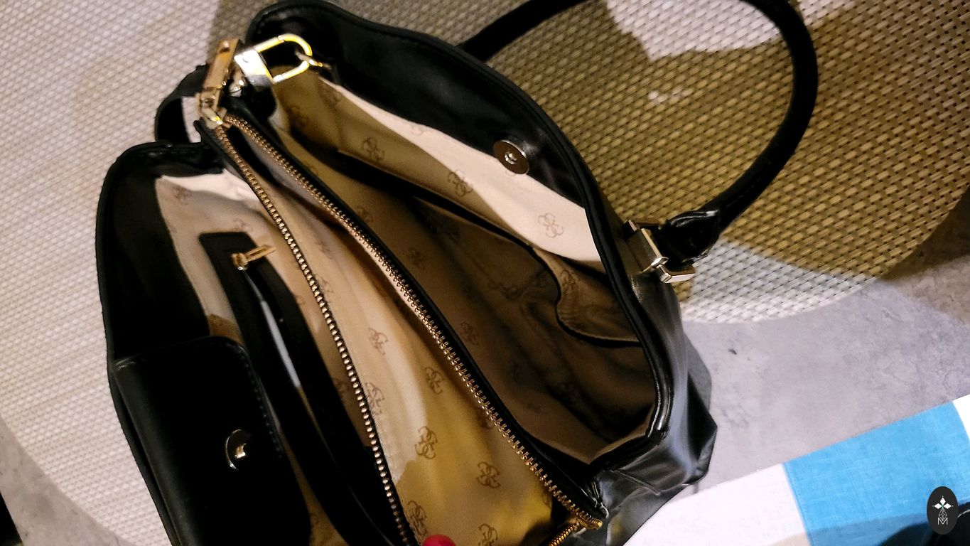 MK soma replika, ziloņkaula krāsā, lietota, ja labi pameklēt, var atrast dažas lietojuma pazīmes, kas nekrīt acīs. Ļoti ietilpīga, daudz nodalījumu, izmērs: 29/39 cm.