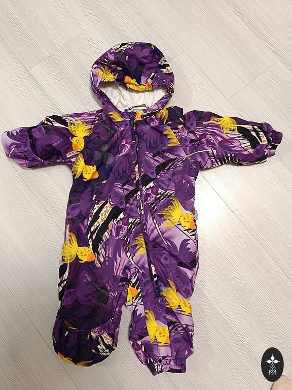 Весенний комбинезон отлично подойдет для сада в это время. Из недостатков - потертые края брюк, маленькие дырочки, но их не видно. Состояние бывших в употреблении товаров.