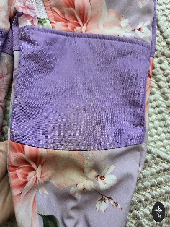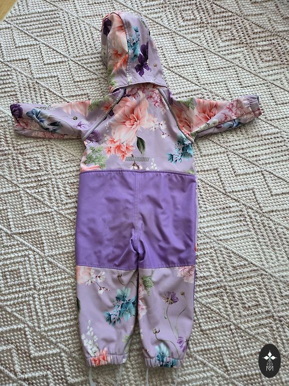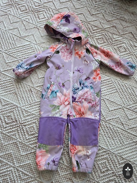 Kombinesoon on õrnalt kasutatud ja heas seisukorras. Käte ja jalgade osad ei ole kulunud, samuti ei ole kulunud põlved. On kummid, et saab panna kingade alla :)