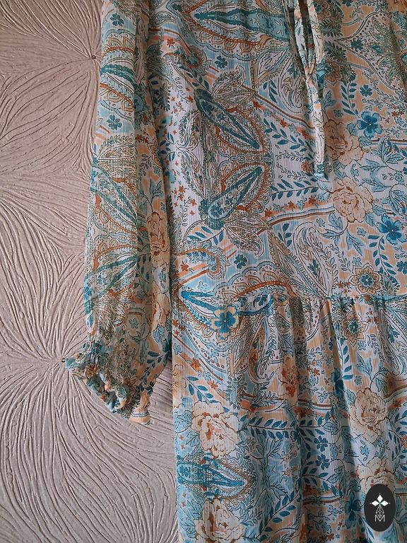 Зеленый цвет платья, длина 60 см, грудь 100 см.