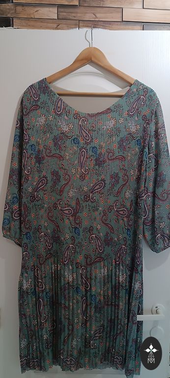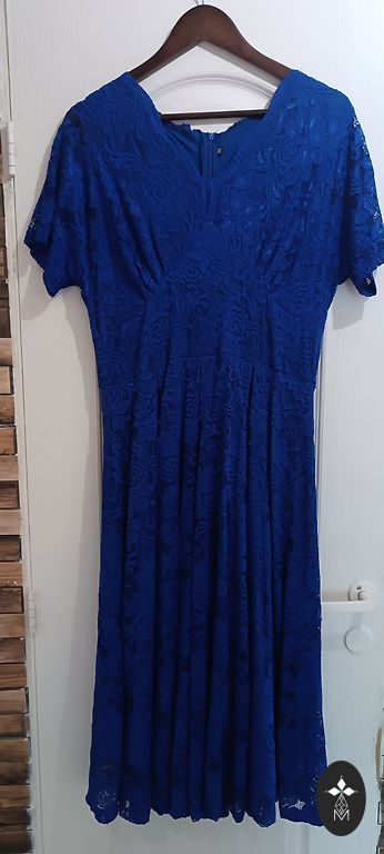Светло-голубое платье свободного силуэта, состоит из нижнего платья и верхнего платья. Размер UK18, подойдет на 46/48. Длина верхнего платья 130, подмышками 60x2, на бедрах свободно - 71x2;