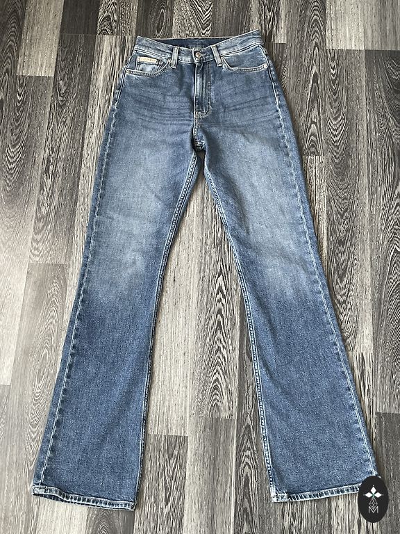 Parduodu naujus CK Jeans, juosmu tinka W29 arba 36 dydžiui arba S dydžiui (t.y. 36x2cm), bet ilgis L32 yra 112cm nuo juosmens viršaus iki apačios, o vidinė siūlė yra 80 cm. Kelnių kojos nėra platėjančios... Medvilnė su elastanu, malonus audinys, šiek tiek tempiasi, mano 159 cm yra per ilgos :( Siunčiu su bet kuriuo paštomatu, 20 eurų su įskaičiuotu siuntimu.
