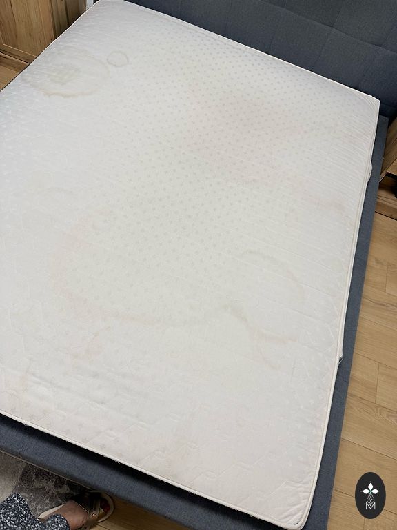 Helping to sell a bed with a mattress. The mattress is double-sided.